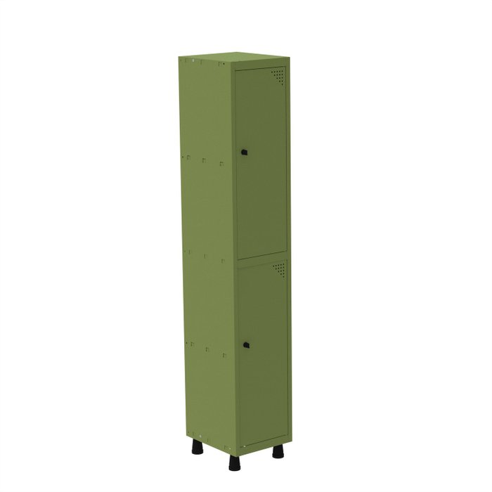 Armário Roupeiro de Aço totalmente montável, dispensa a utilização de parafusos, estrutura em chapas #24 e #26 (0,60mm e 0,45mm) conta com uma porta com estampos circulares em formação triangular para ventilação, sistema de fechamento de varão de 3 pontos, através de pitão para cadeado. Em conformidade com as normas NR17 e NR24, garantindo segurança no ambiente de trabalho.