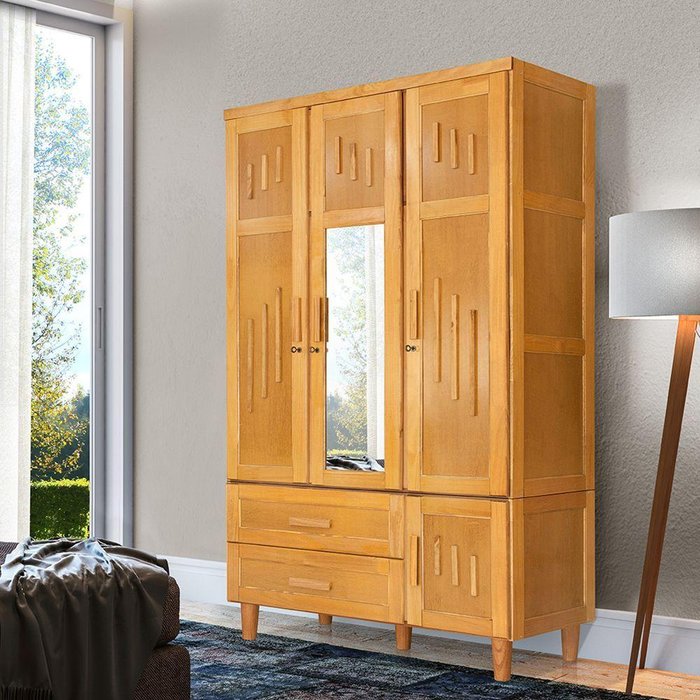 Roupeiro Em Madeira Maciça Imperatriz 3 Portas 1 Porta Com Espelho Imbuia - Marrom