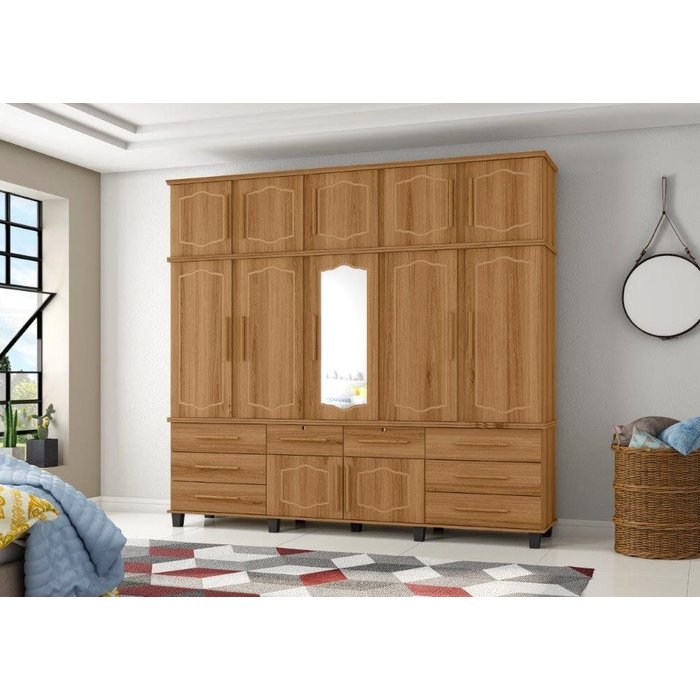 Roupeiro / Guarda Roupas Diam Triplex 2.40m com Espelho Casal Amplo Espaço Interno e Gavetas com Cha