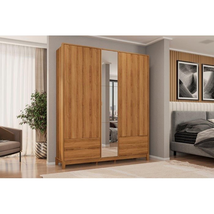 Roupeiro / Guarda Roupas GRAF 2.00m 5 Portas + 4 Gavetas Com Corrediças Telescópicas Com Espelho na