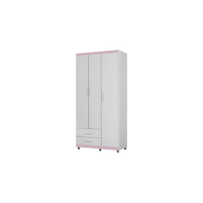 Roupeiro / Guarda Roupas Ti Solteiro 3 Portas Cor Branco / Rosa