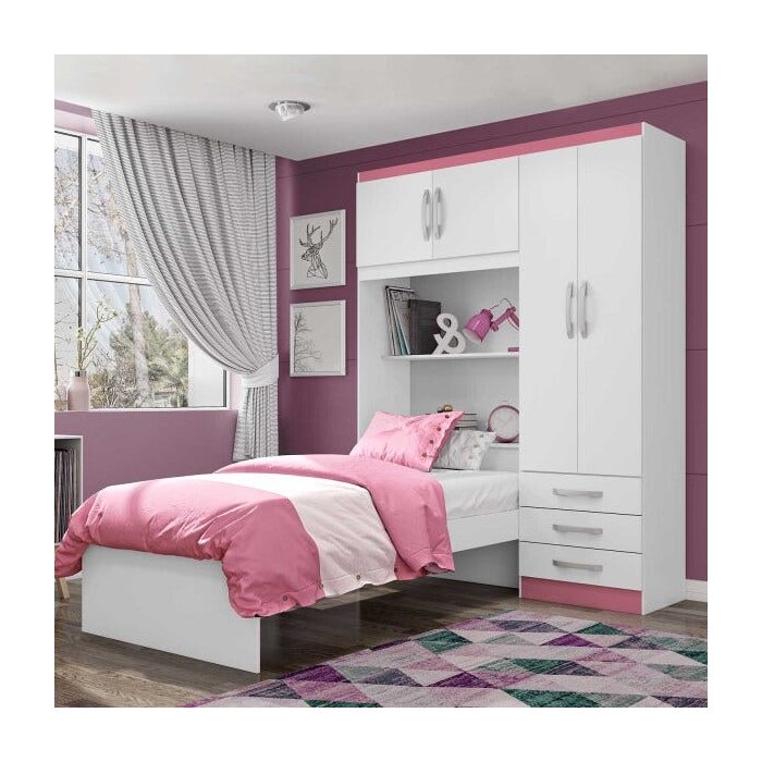 Roupeiro Lisboa Pink 4 Portas com Cama