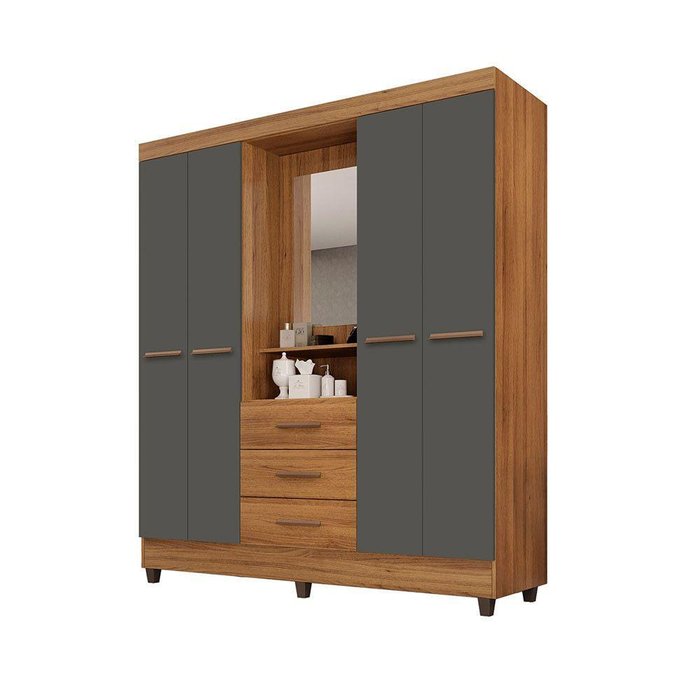 Roupeiro Magno 4 Pts C/espelho e Pes 27978.237 Dj Mel/cinza Urbano Cinza