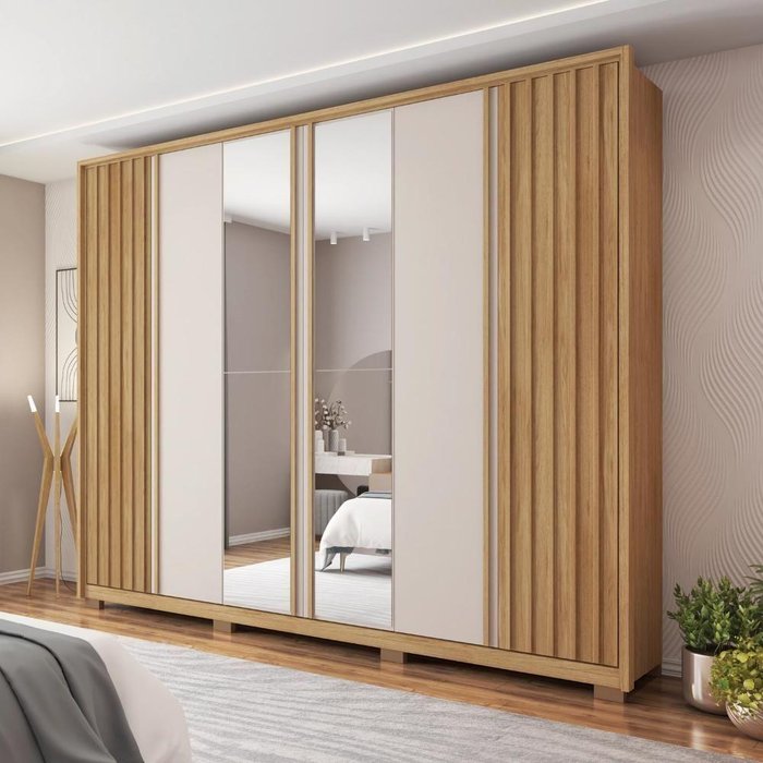 Roupeiro Ripado 6 Portas Com 2 Espelhos Douro Buriti Off White