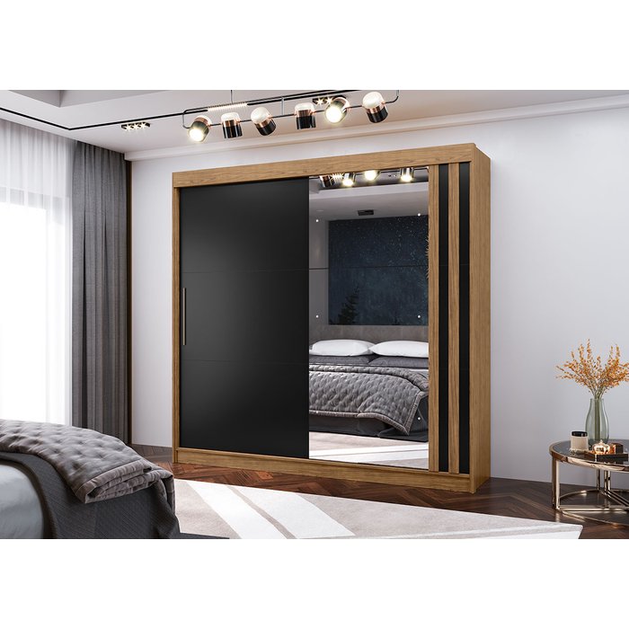 Roupeiro Seul 2 Portas com Espelho - Freijó-nero Mx Móveis