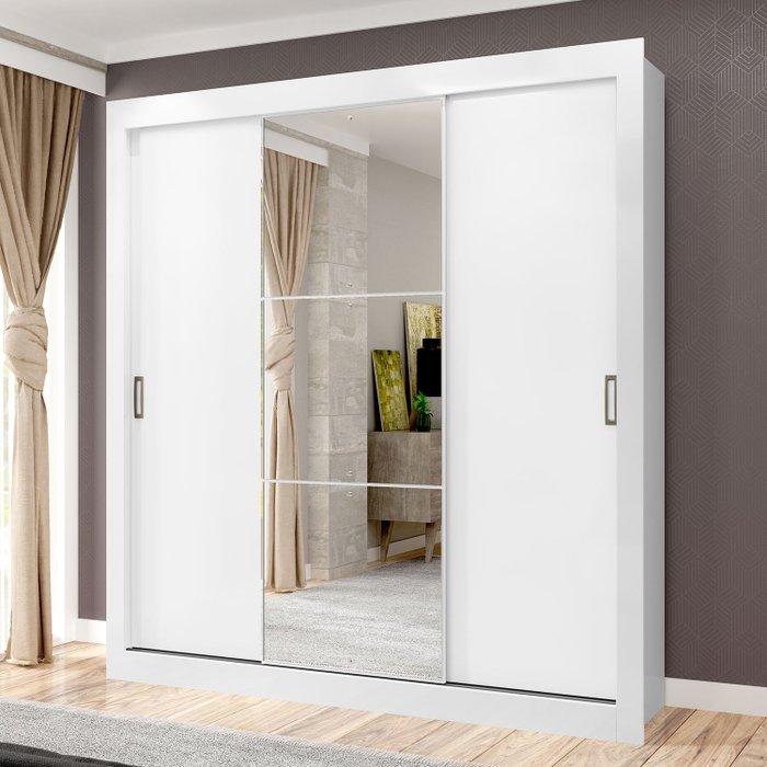 Roupeiro Smart 3 Portas de Correr C/ Espelho - Branco Maxel