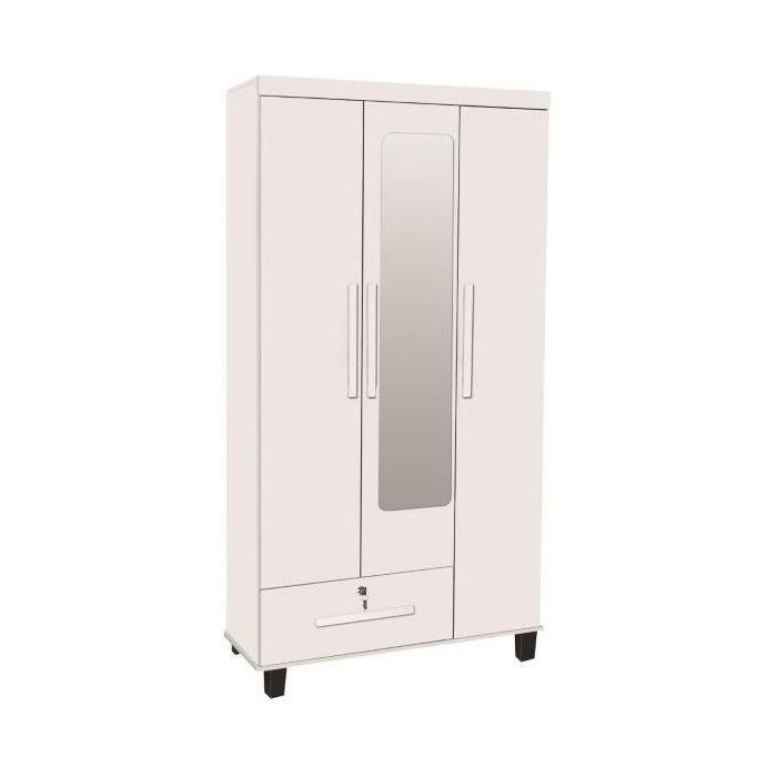 Roupeiro Solteiro 3 Portas + 1 Gaveta C/ Espelho Cor Branco Trinobel
