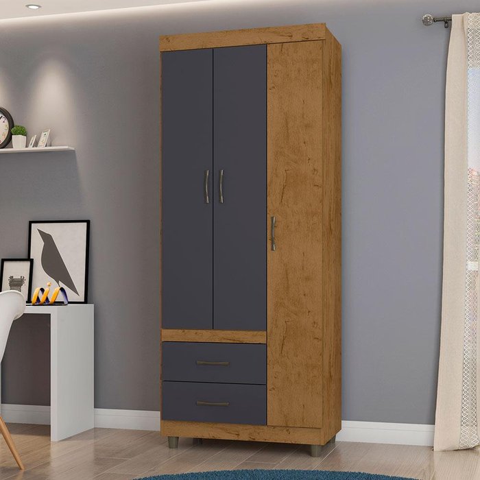Roupeiro Solteiro 3 Portas 2 Gavetas Freijó Carbono 2232-98 Araplac