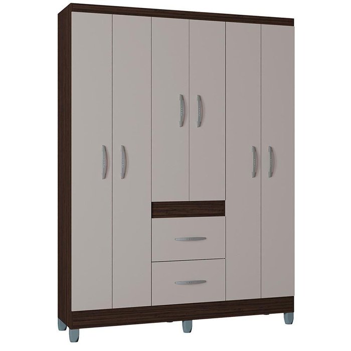 Roupeiro Solteiro 6 Portas 838 Chocolate Off White Poqq Chocolate Off White