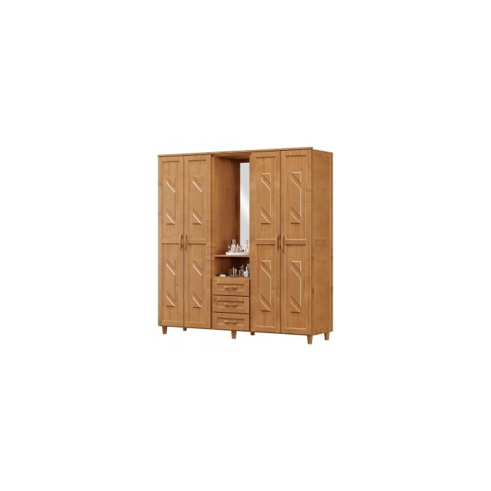 Roupeiro Tapajós capelinha com estrutura em Madeira de Pinus Reflorestada, acabamento feito em Poliuretano (PU) FOSCO, que preserva as características da madeira e garante uma ótima conservação e durabilidade do produto. Possui espelho, gavetas, cabideiro, prateleiras e nicho proporcionando espaço para tudo. Puxador de madeira que valoriza ainda mais o produto. Não nos responsabilizamos, no ato da entrega por montagens e desmontagens, entregamos até a porta de entrada da casa do cliente ou até a portaria do condomínio. Demais itens e acessórios são apenas decorativos e não acompanham o produto. Foto meramente ilustrativa.