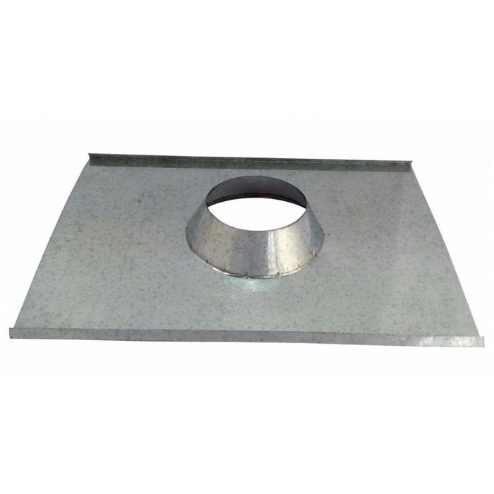 Rufo Colarinho De Telhado Galvanizado Para Chaminé De 130 Mm De Diâmetro Rufo colarinho base para acabamento de telhado de chaminé de lareira, forno, fogão econômico... Furo ideal para dutos de 130 mm ( 5" ) de diâmetro.