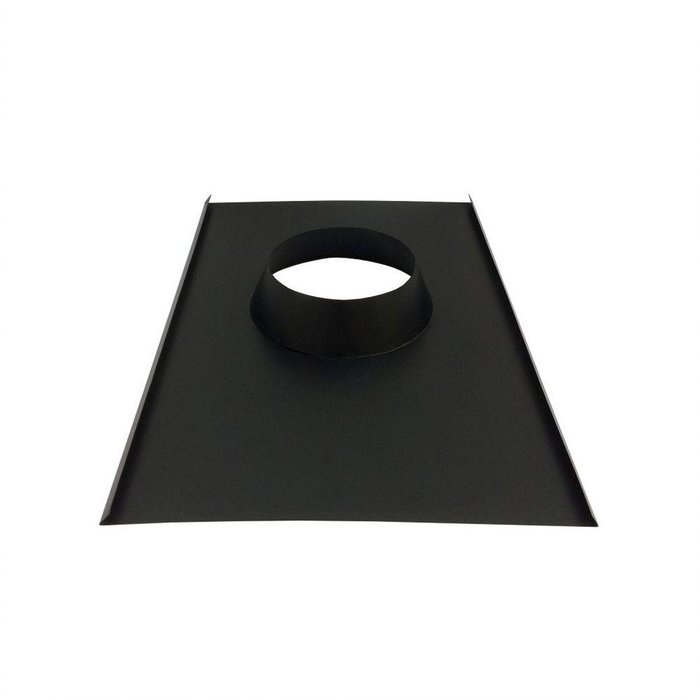 Rufo Colarinho De Telhado Preto Para Chaminé De 115 Mm De Diâmetro Rufo colarinho base para acabamento de telhado de chaminé de lareira, forno, fogão econômico... Furo ideal para dutos de 115 mm ( 4,5" ) de diâmetro.