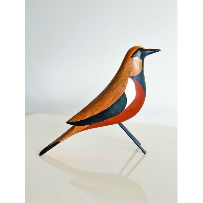 Sabiá em Madeira - Pintura Barroca - Escultura de Passarinho