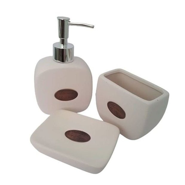Jogo contendo: 01 saboneteira, 01 porta sabonete líquido, 1 porta-multiuso.