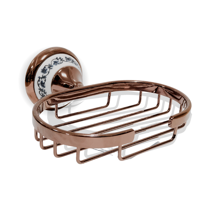 Saboneteira Vintage Retrô Provençal Ouro Rosé com Porcelana Rosé
