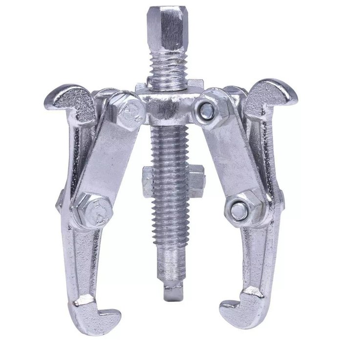Saca polia 3 pontas é utilizado para extrair engrenagens e rolamentos de diâmetro reduzidos. Utilizado para extrair polias, buchas e rolamentos. O saca polia é uma ferramenta que serve para remover polias ou outros elementos de máquinas presos a eixos ou em outros componentes. Esta ferramenta é composta por um fuso, que exerce uma força contra a face do eixo em que a polia está montada, e por garras que puxam a polia na direção contrária.