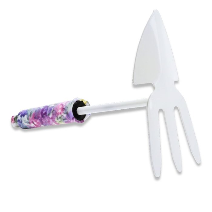 * O cabo plástico estampado, além de leve e ergonômico, traz um design moderno e exclusivo, deixando seu kit de jardinagem ainda mais bonito.