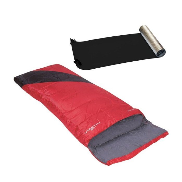 Saco de Dormir Nautika Liberty Vermelho + Isolante Térmico E.V.A. Aluminizado Preto