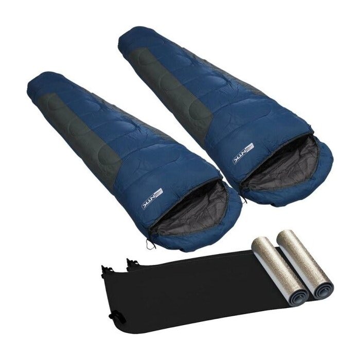Saco de Dormir Sarcófago Mummy 2 Unidades + Isolante Térmico Aluminizado 2 Unidades - Nautika Azul