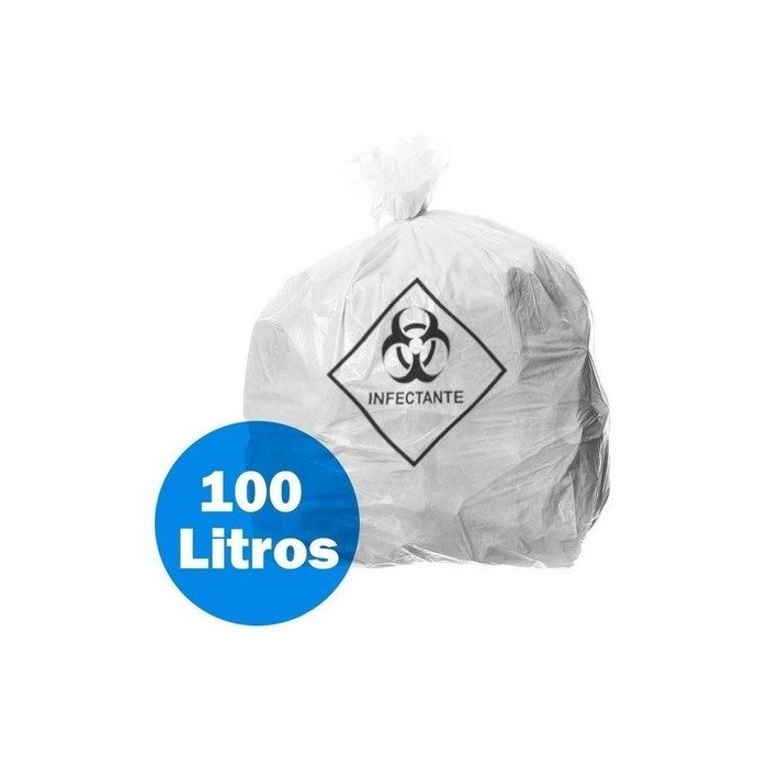 Saco De Lixo Infectante 100 Litros Reforçado - 100 Unidades Branco