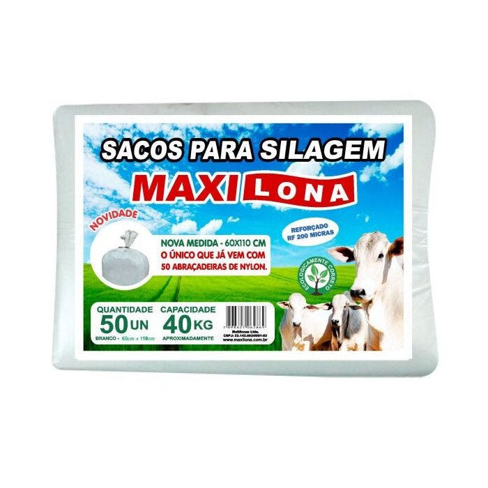 Saco para Silagem Maxilona 60x110cm Branco Ref.200 Micras 50un Acompanha 50un Abraçadeiras de Nylon