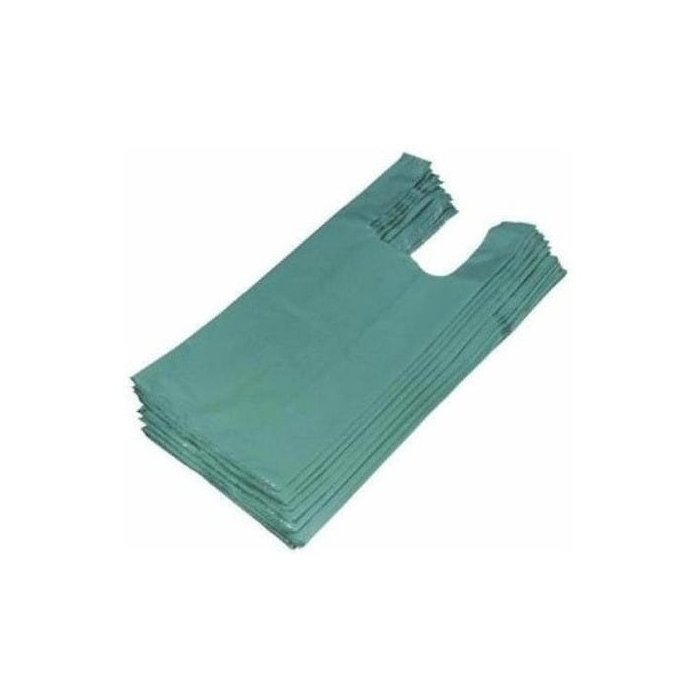 Sacola Reciclada 30X40 Verde Com 5KgA sacola é produzida em polietileno de alta densidade. É um produto de extrema resistência, versatilidade e usabilidade. Por suportar bastante peso sem comprometer a sua qualidade e formato inicial a sacola alça camiseta pode ser usada em diversos segmentos desde supermercados, padarias, mercearias, lojas de calçados e brinquedos. Fora isso temos o apelo sustentável por se tratar de um material 100% reciclável, temos diversas formas de reaproveitar esse produto num ambiente doméstico, estimulando a reciclagem e sustentabilidade. Características do produto: Sacola verde Tamanho: 30x40cm Pacote: 5kg
