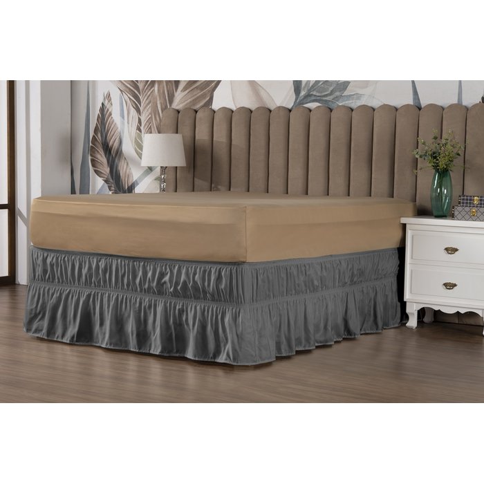 Saia Box Babado Cama Casal Queen e King Ajustável com 2 Elásticos Lisa Cinza