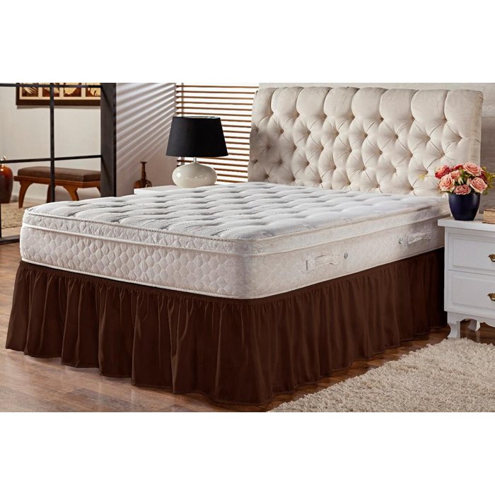 Saia Box Babado Cama Casal Queen e King Ajustável com Elástico Lisa Marrom Marrom