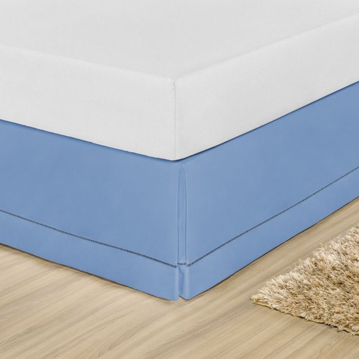 Saia Box Cama Queen Size Algodão Percal 200 Fios Ponto Palito:azul Claro Azul Claro