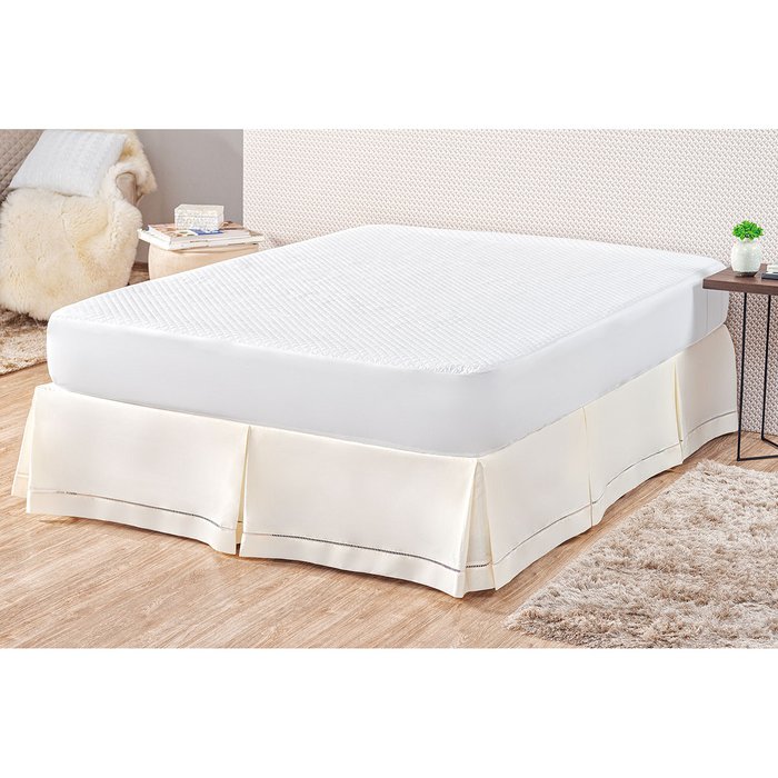 Saia para Box é perfeita para Embelezar o seu Quarto e oferece um caimento ideal ao Jogo de Cama, possibilitando um Visual mais sofisticado e elegante, ajustando-se a qualquer tipo de combinação de cores que você quiser adotar para o ambiente. Além de proteger a base box das adversidades ao longo do tempo. Sua cama precisa ir além da funcionalidade e conforto, pois uma boa noite de sono também depende de um ambiente acolhedor e harmonioso.Itens Inclusos: 01 Saia 2,05m x 1,38m até 35cm de alt Composição: 80% Algodão | 20% Poliéster