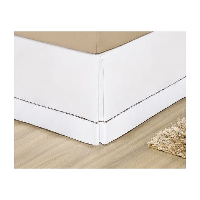 Saia Cama Box Baú Solteiro Ponto Palito Percal Algodão - Branco