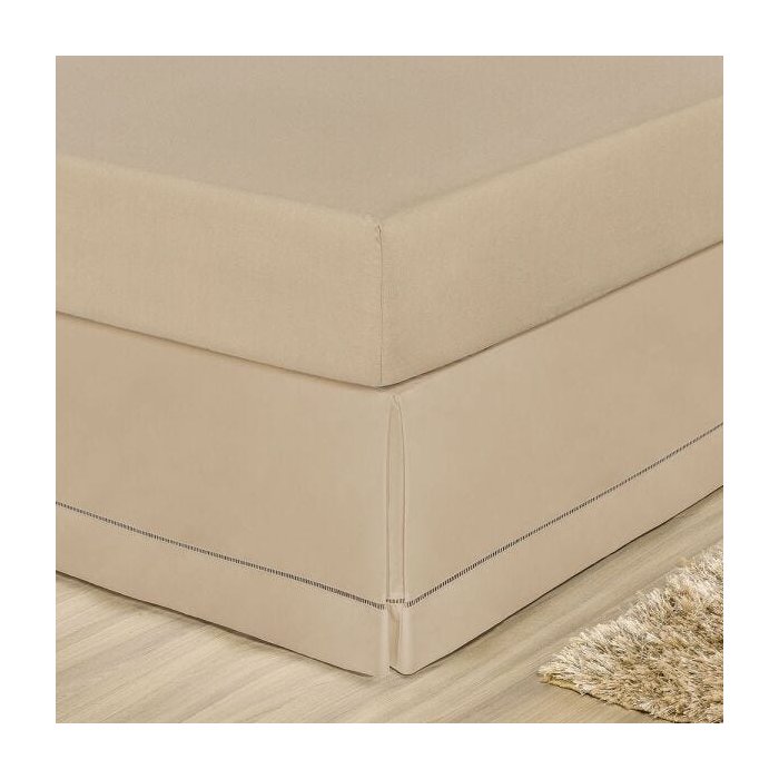 Saia Cama Casal Queen Box Percal 180 Fios Acabamento em Ponto Palito - Cáqui