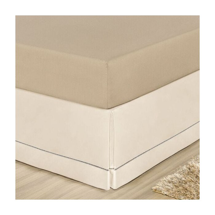 Saia Cama Solteiro Box Percal 180 Fios Acabamento em Ponto Palito - Palha