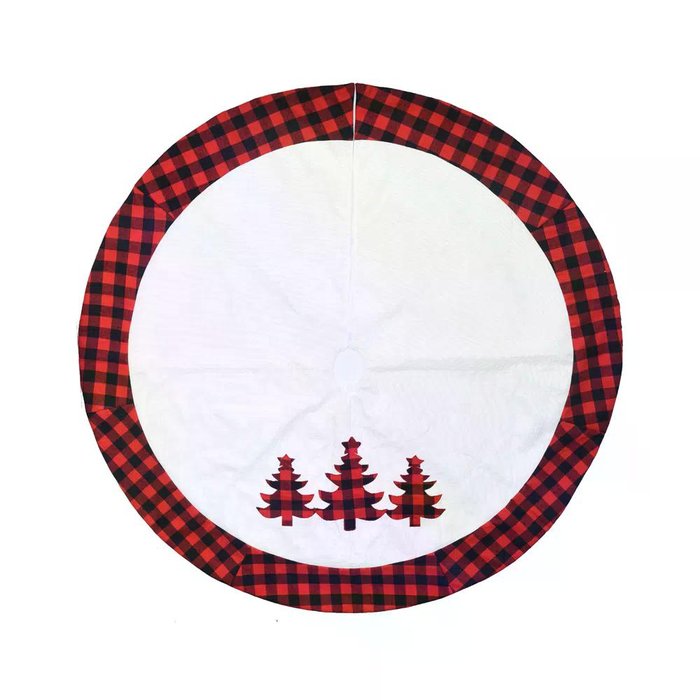 Saia de Arvore Natal Bege e Arvores e Barra Xadrez 120cm