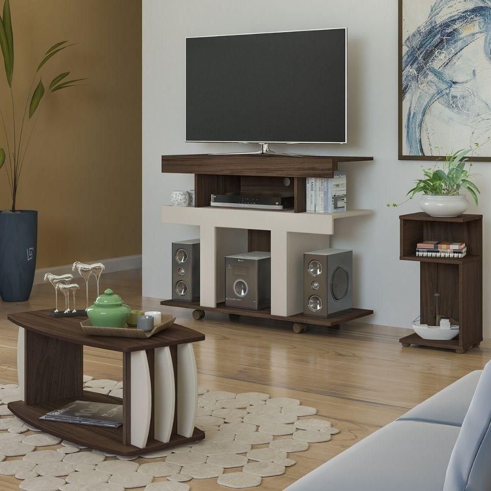 Sala de Estar até 42'' Rack Anthony Mesa de Centro Karina Mesa de Apoio Lexy Amendoa/off Espresso