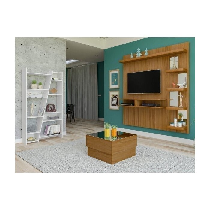 Sala de Estar com Painel para TV até 50 Polegadas Estante 10 Nichos e Mesa de Centro com Tampo Espel