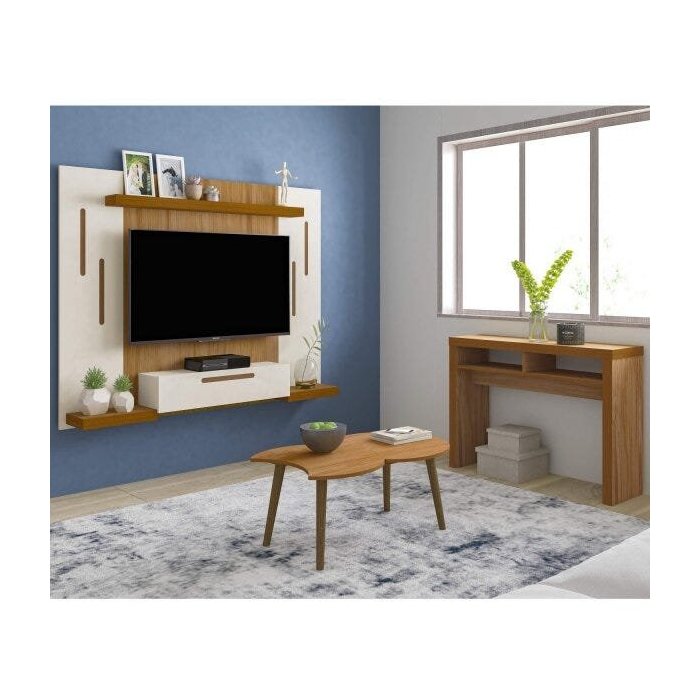 Sala de Estar com Painel para TV até 50 Polegadas Mesa de Centro Moon e Aparador 2 Nichos Vegas Arte Freijó/Off White