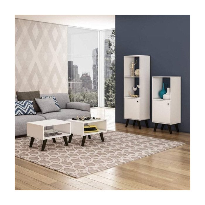 Sala de Estar Completa com 2 Estantes e 2 Mesas de Centro Delmarco Móveis Branco