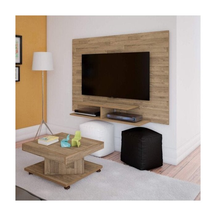 Sala de Estar Completa com Painel e Mesa de Centro Viena Espresso Móveis Rústico