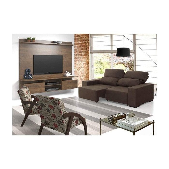 Sala de Estar Completa com Painel Home, Sofá e 2 Poltronas Viero