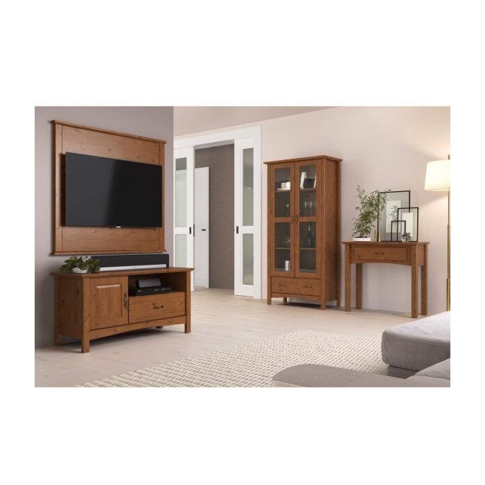 Sala de Estar Completa com Rack, Painel, Mesa de apoio e Cristaleira Móveis MPO Acácia