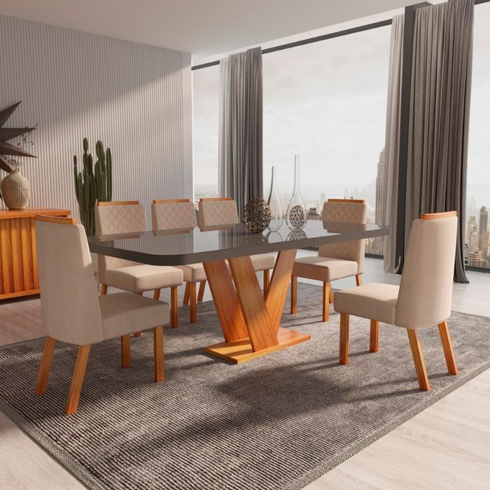 A Sala de Jantar Aurora 160x80 MDF/Vidro Grafite da Bom Pastor, contém no conjunto uma mesa de 1,60m x 80cm. Este conjunto é perfeito para refeições em família e reuniões com amigos. A mesa, fabricada 100% em MDF, oferece durabilidade e resistência, complementada por bordas em PVC super resistentes e um tampo de vidro de 4mm.MedidasQuantidade de Volumes: 6