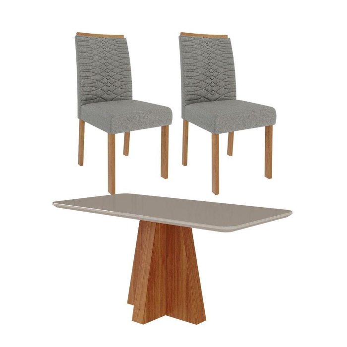 Sala de Jantar 160x90cm Tampo Mdf/vidro 6 Cadeira Cimol Maitê Cimol Cinamomo/off/mad/linho Grafite Cinamomo/Off/Mad/Linho Grafite
