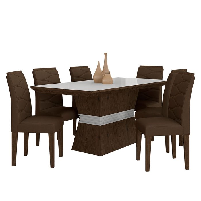 Sala de Jantar 6 Cadeiras Nazca Imbui/off Whi/marro - Móveis Arapongas Imbuia/off White/marrom 04