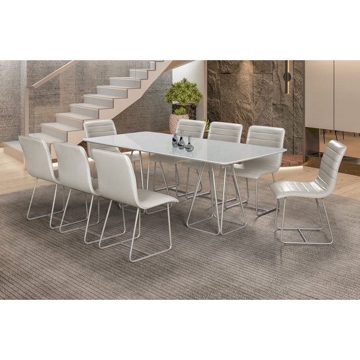 Sala de Jantar com Vidro 8 Cadeiras 2,0x1,0m - Milão - Cm Decor