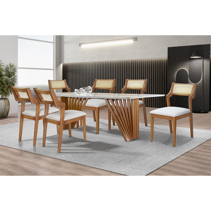 Sala de Jantar com Vidro com 6 Cadeiras 2,0x1,0m - Panama - Mg Movelaria