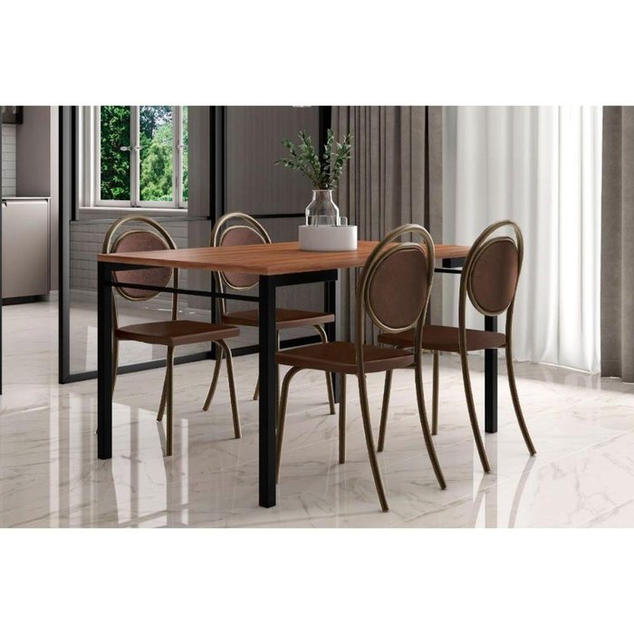Sala de Jantar Completa 1526 C/ Tampo Madeirado 136x90cm e 4 Cadeiras 1738 Ouro Velho/courano Cacau