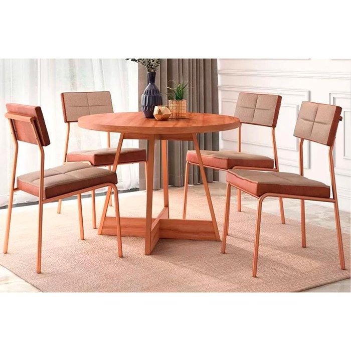 Sala de Jantar Completa Átria 1594 Aço c/ Tampo Madeirado 100cm e 4 Cadeiras Neo Rose/Freijó/Nogal - Rose/Areia - Caramelo - Carraro