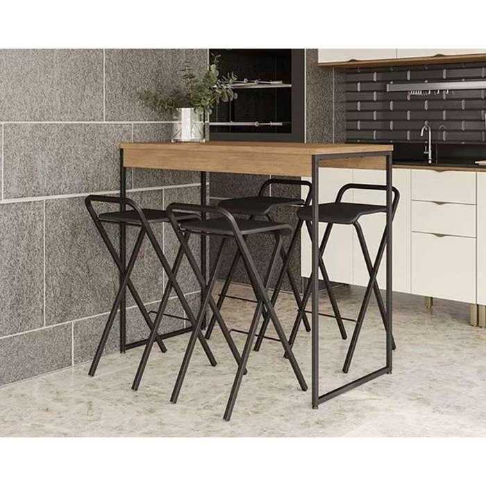 Sala de Jantar Completa Industrial LI016 118cm + 4 Banquetas Dakar Freijó - Kappesberg