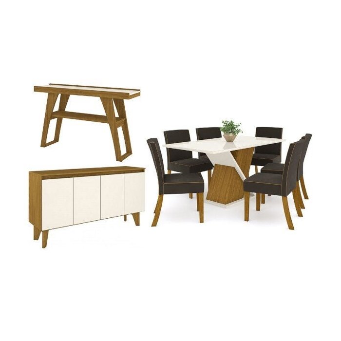 Sala de Jantar Completa Mesa 6 Cadeiras com Buffet e Aparador Solus Nature/off White/marrom - Henn